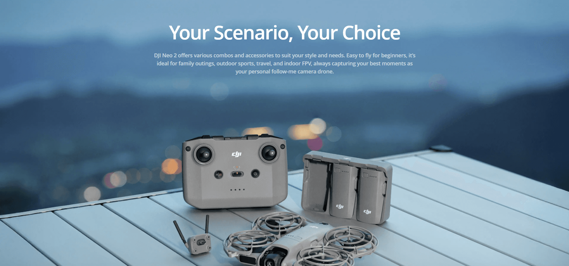 With multiple combo options, DJI Neo 2 adapts to your creative style and shooting demands. From effortless everyday tracking shots, to beginner-friendly aerial capture and fully immersive flight experiences, you’ll always find the ideal match.