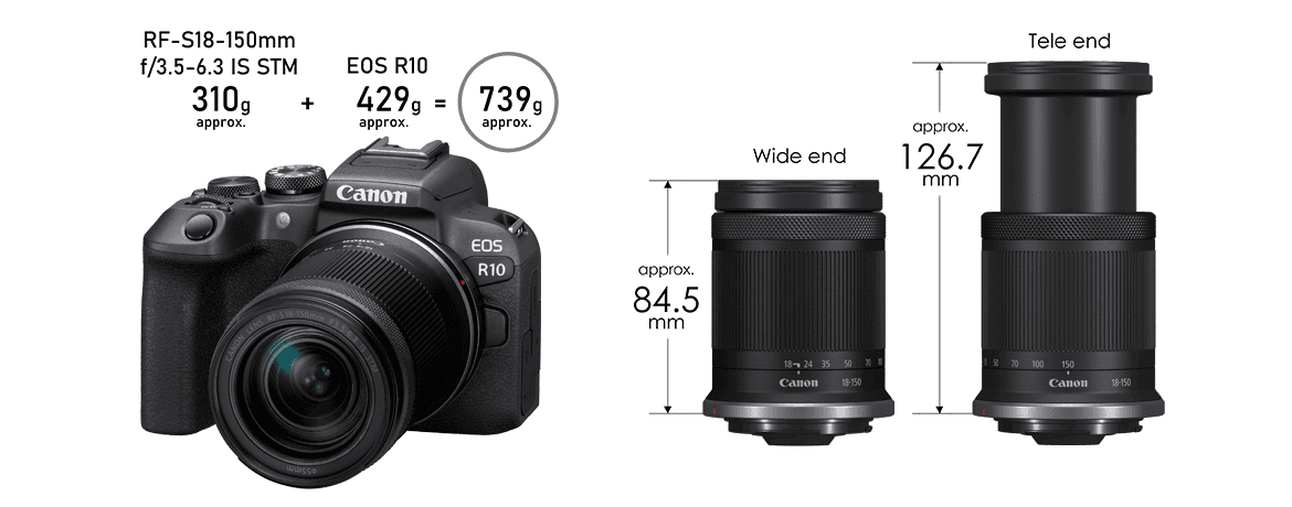 RF-S18-150mm f/3.5-6.3 IS STM is a perfect pair for APS-C EOS R System cameras that delivers exceptional quality in a compact size. Measuring 69mm f/3.5-6.3 IS STM is portable. In addition, it is nearly 35% lighter than the EF_S18-135mm f/3.5-5.6 IS STM, weighing only 310g.