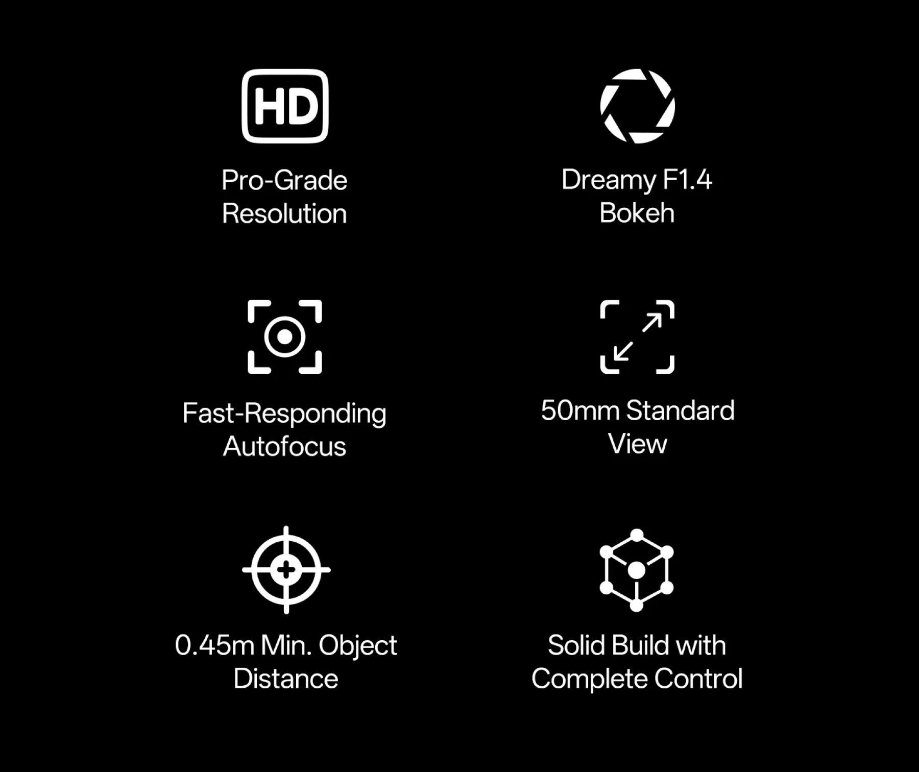 - Bright F1.4 Aperture for Portraits & Low-Light.