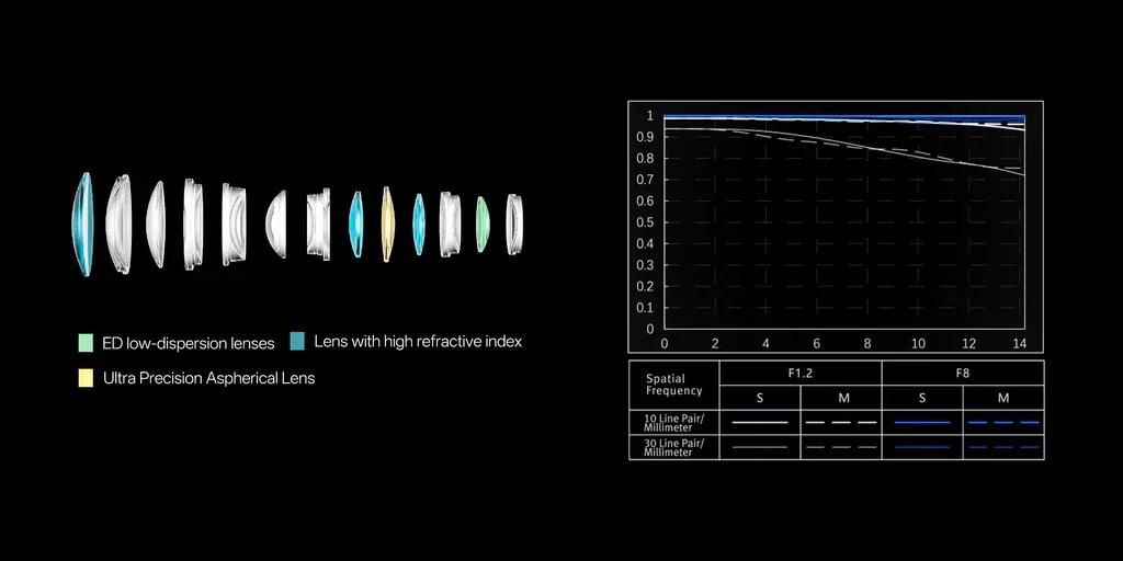 The precisely engineered optical design of 13 elements in 8 groups delivers edge-to-edge sharpness even at F1.2 maximum aperture, revealing phenomenal detail and clarity.