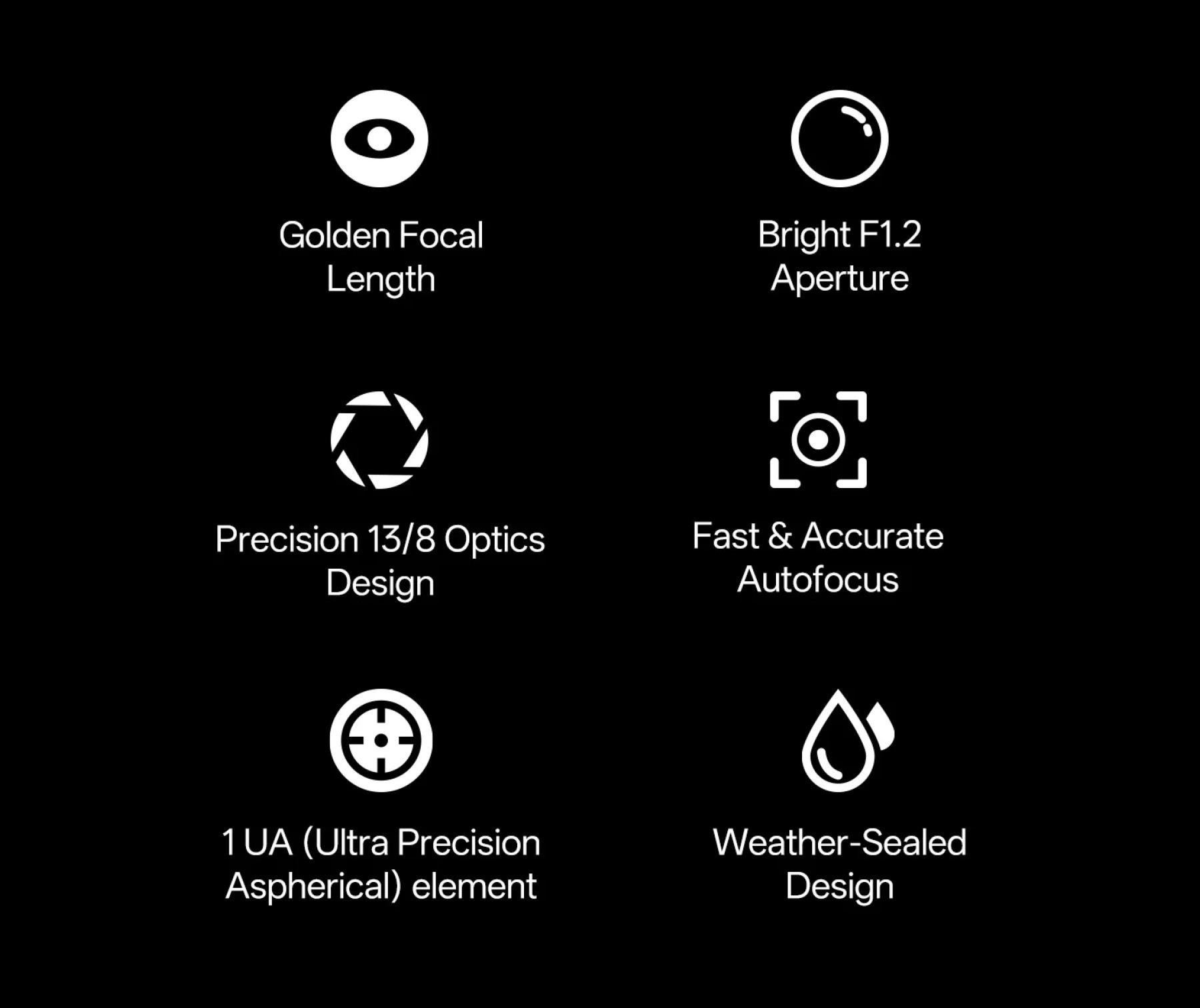 - Ultra-Bright F1.2 Aperture for Portraits & Low-Light.