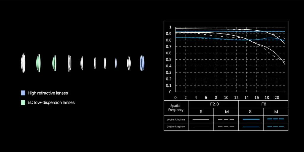 The precisely engineered optical design of 10 elements in 8 groups delivers edge-to-edge sharpness even at F2.0 maximum aperture.