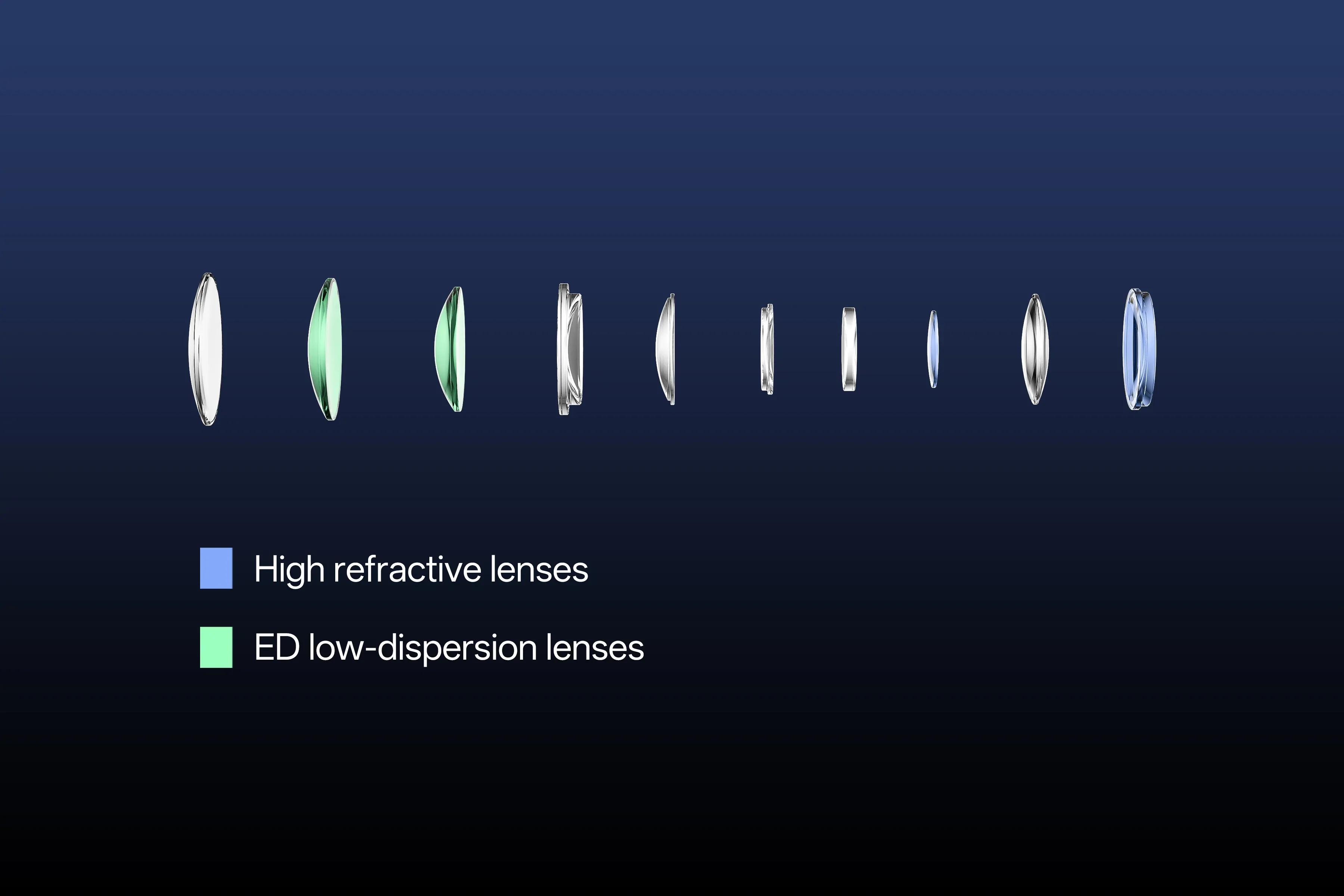 2 ED elements effectively correct axial chromatic aberration, delivering crisp, color-fringe-free images.<