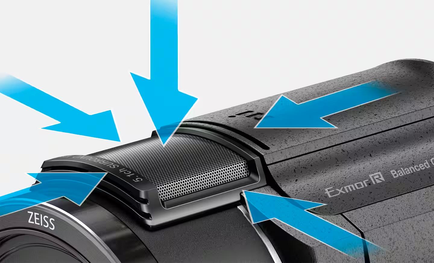The ZEISS® Vario-Sonnar T* lens has a widest angle of 26.8 mm7, allowing more of a subject to fit in the frame. Capture a wide variety of scenes with the 20x optical zoom (26.8-536.0mm; 16:9 mode), plus 30x (4K)8 or 40x (HD) Clear Image Zoom and 250x digital zoom 9