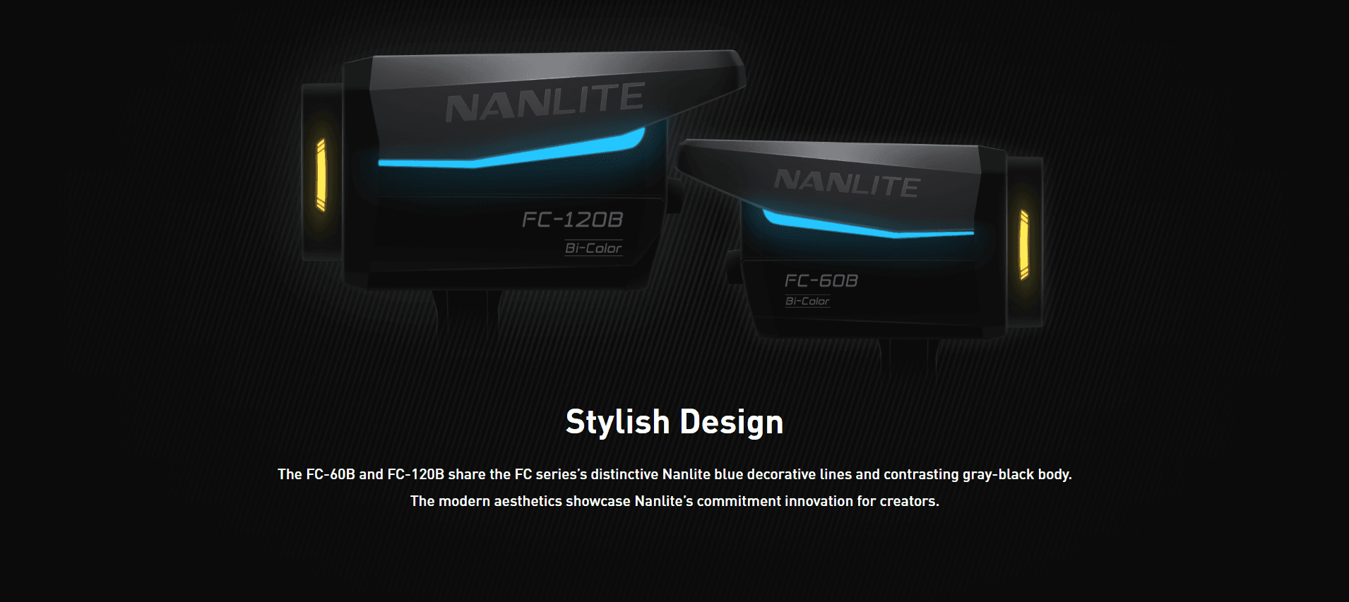 The FC-60B inherits Nanlite's DNA in point source lighting — lightweight, high output, and seamlessly blending aesthetics, highlighting their design. The additional USB-PD powering port offers users more flexibility in powering the lights.