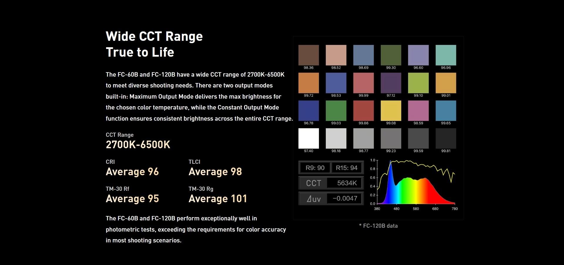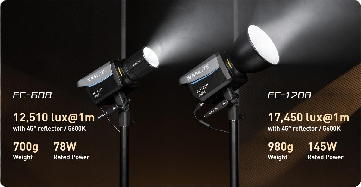 The FC-60B feature stylish and lightweight design. Despite their palm-sized bodies they deliver high-output,brightness, with 12,510lux@1m and 17,450lux@1m respectively (with 45° reflector, 5600K). Equipped with professional-grade COB light sources, they deliver excellent and even beam performance, attaining professional results.