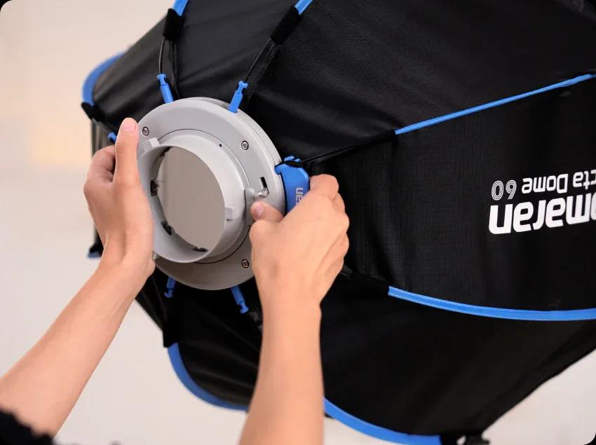 By simply pulling on the speed ring handle to lock, the amaran Octa Domes snap into their octagonal shape in one second – making it faster and easier than ever to build and break down your softbox. Spend less time on setup and more time creating.