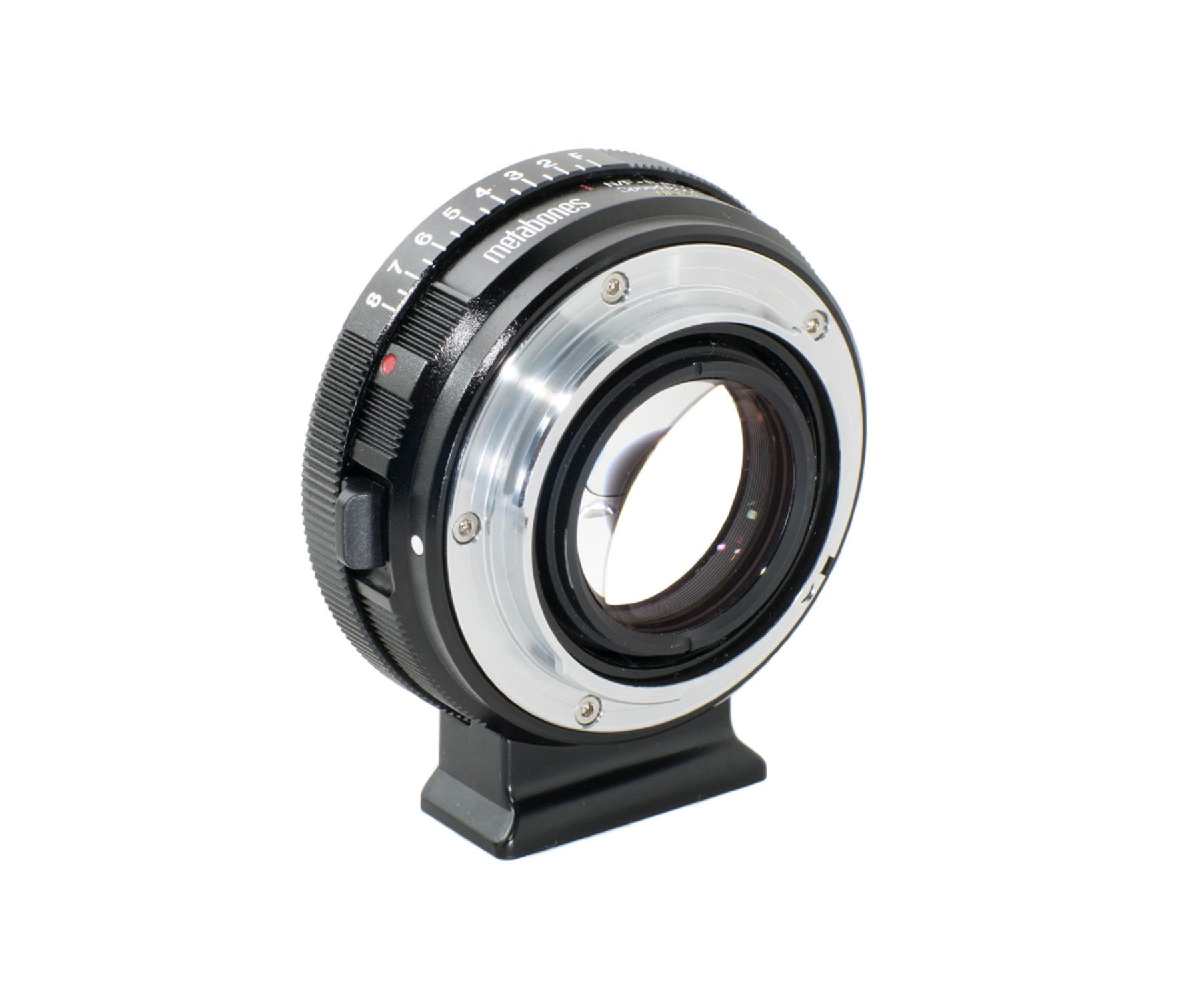 The Metabones Nikon G to E mount Speed Booster ULTRA has a magnification of 0.71x, and effectively reduces the crop factor of mirrorless cameras with DX-sized sensors from 1.5x to 1.07x. The New ULTRA design makes very effective use of exotic materials at the furthest limit of glassmaking technology, and as a result is well corrected for use with virtually all fullframe SLR lenses regardless of exit pupil distance.