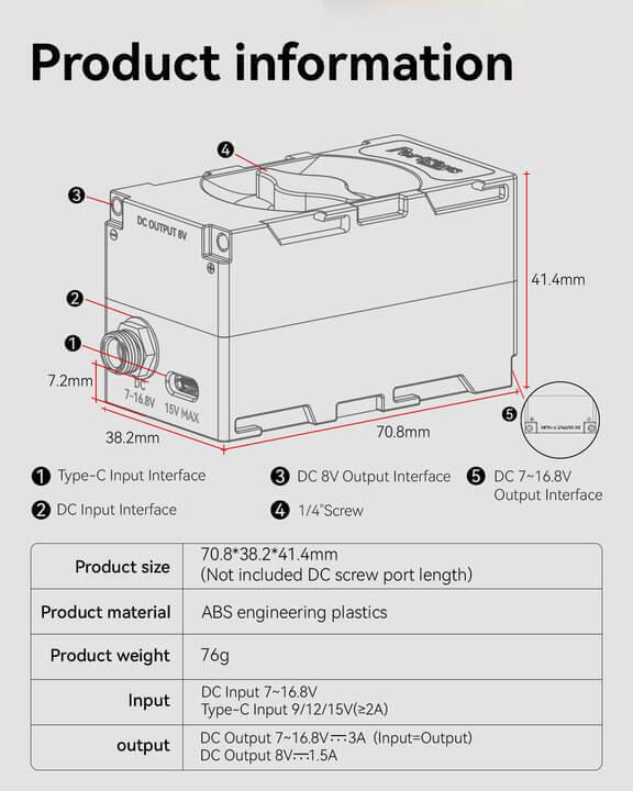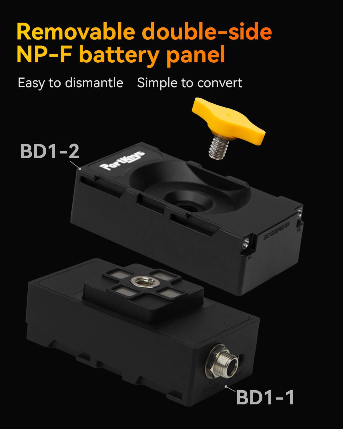- Removable Double-side NP-F Battery Panel.