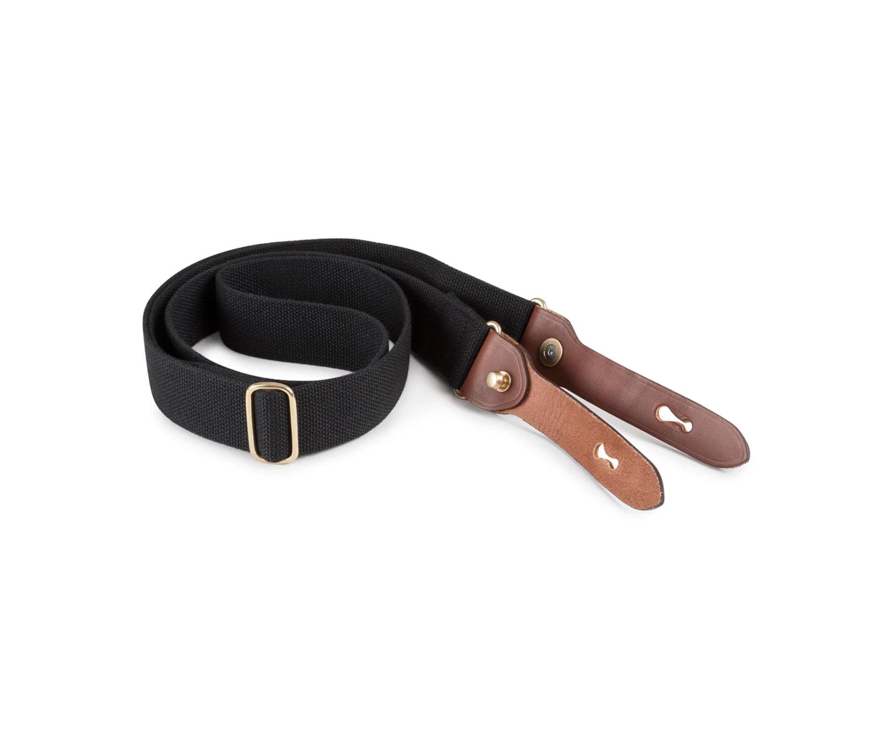 It is made from strong shuttle woven polyester, top-grain leather and solid brass.