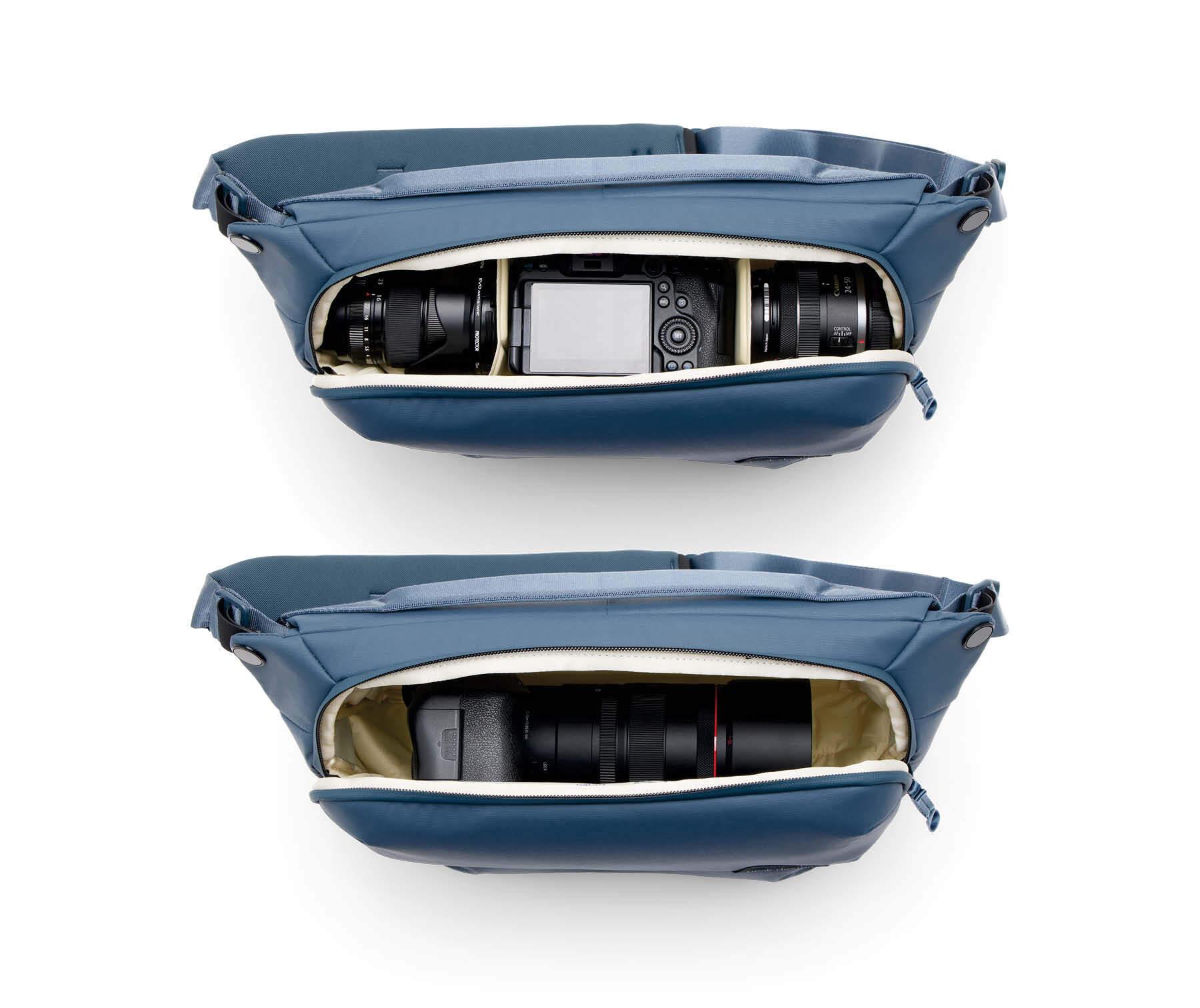 Inside, the Everyday Sling boasts a well-organized layout with customizable padded dividers. These dividers can be adjusted to fit a variety of gear, from camera equipment to personal items. The spacious main compartment allows for efficient organization and quick access to your belongings.