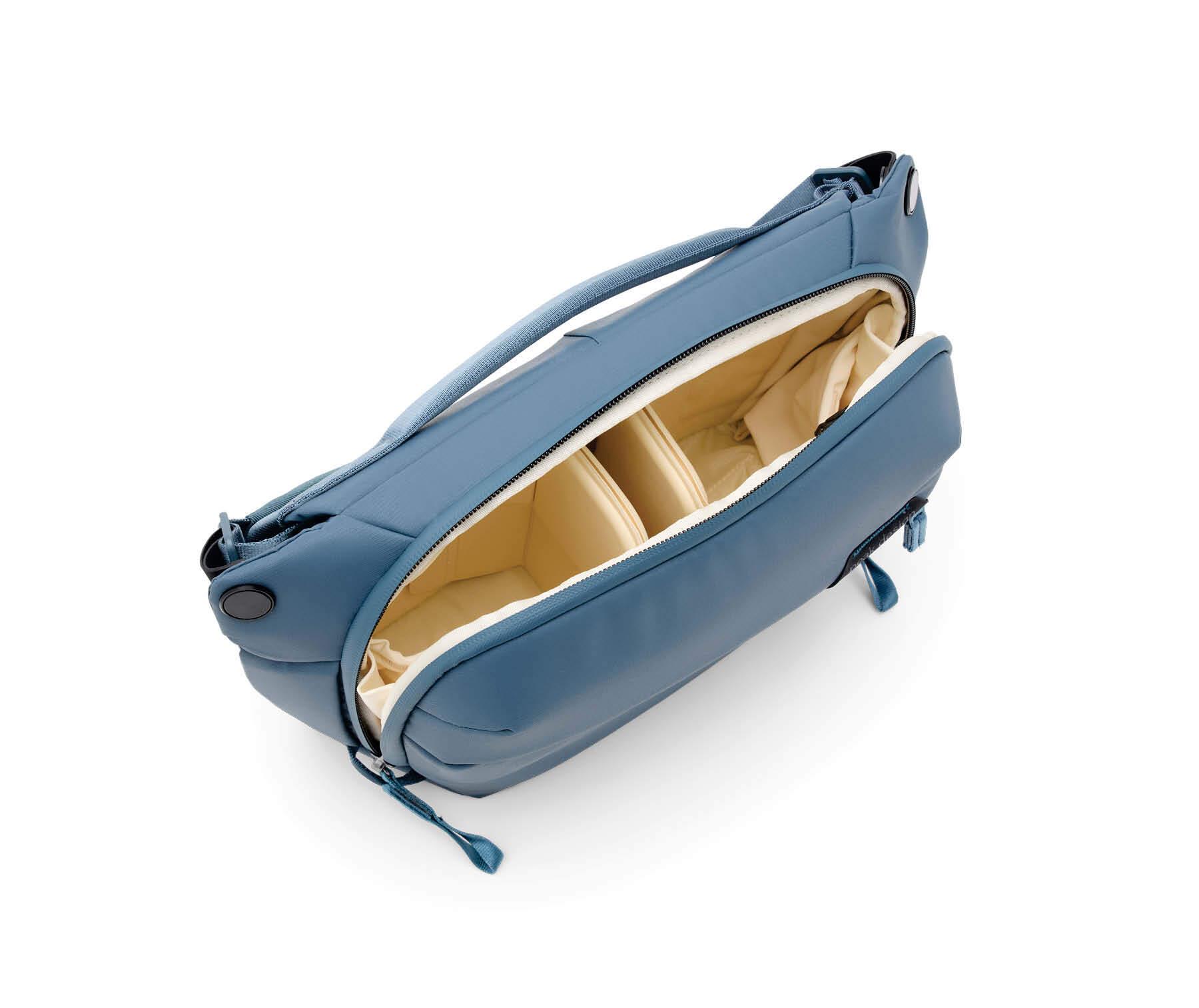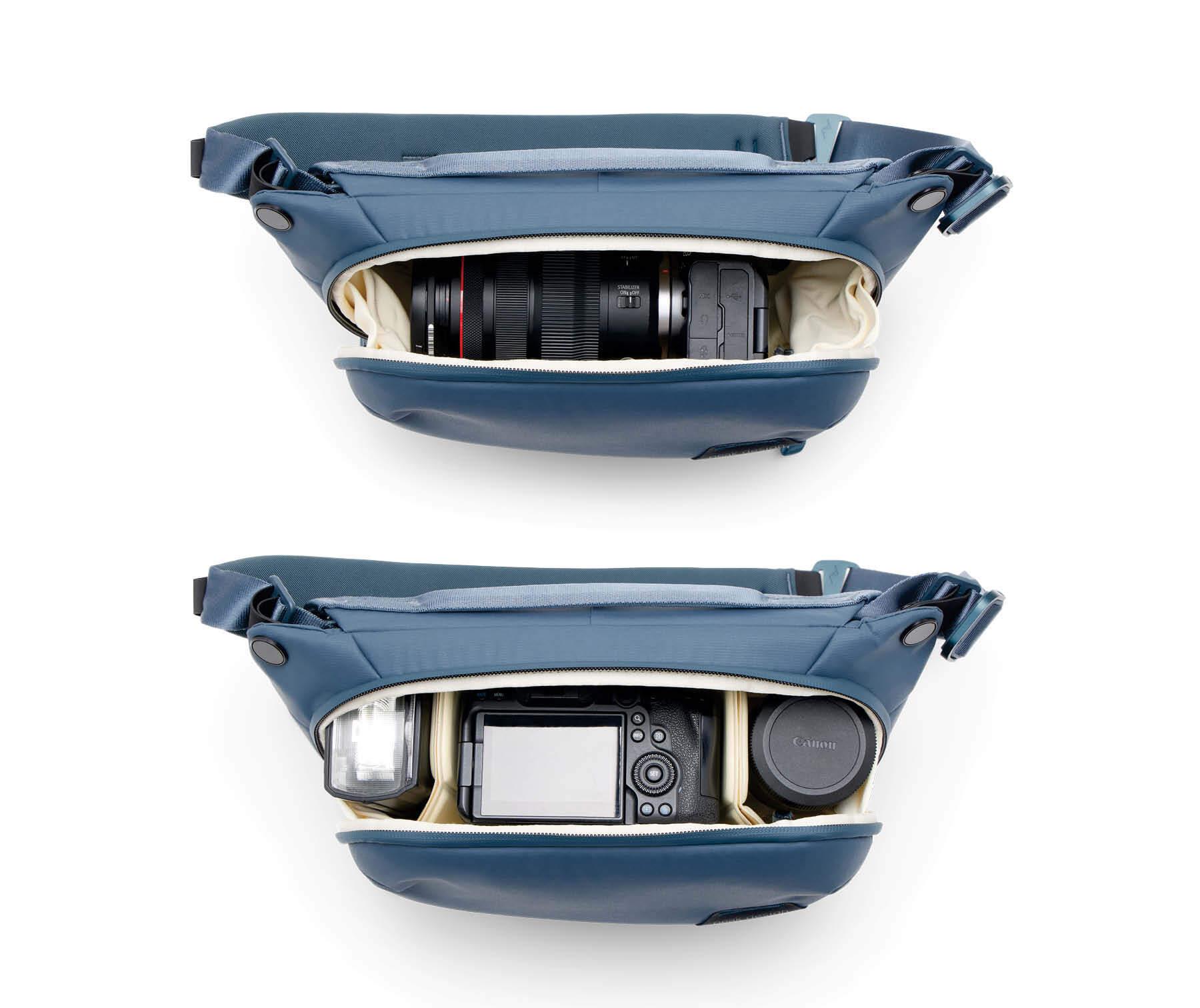 Inside, the Everyday Sling boasts a well-organized layout with customizable padded dividers. These dividers can be adjusted to fit a variety of gear, from camera equipment to personal items. The spacious main compartment allows for efficient organization and quick access to your belongings.