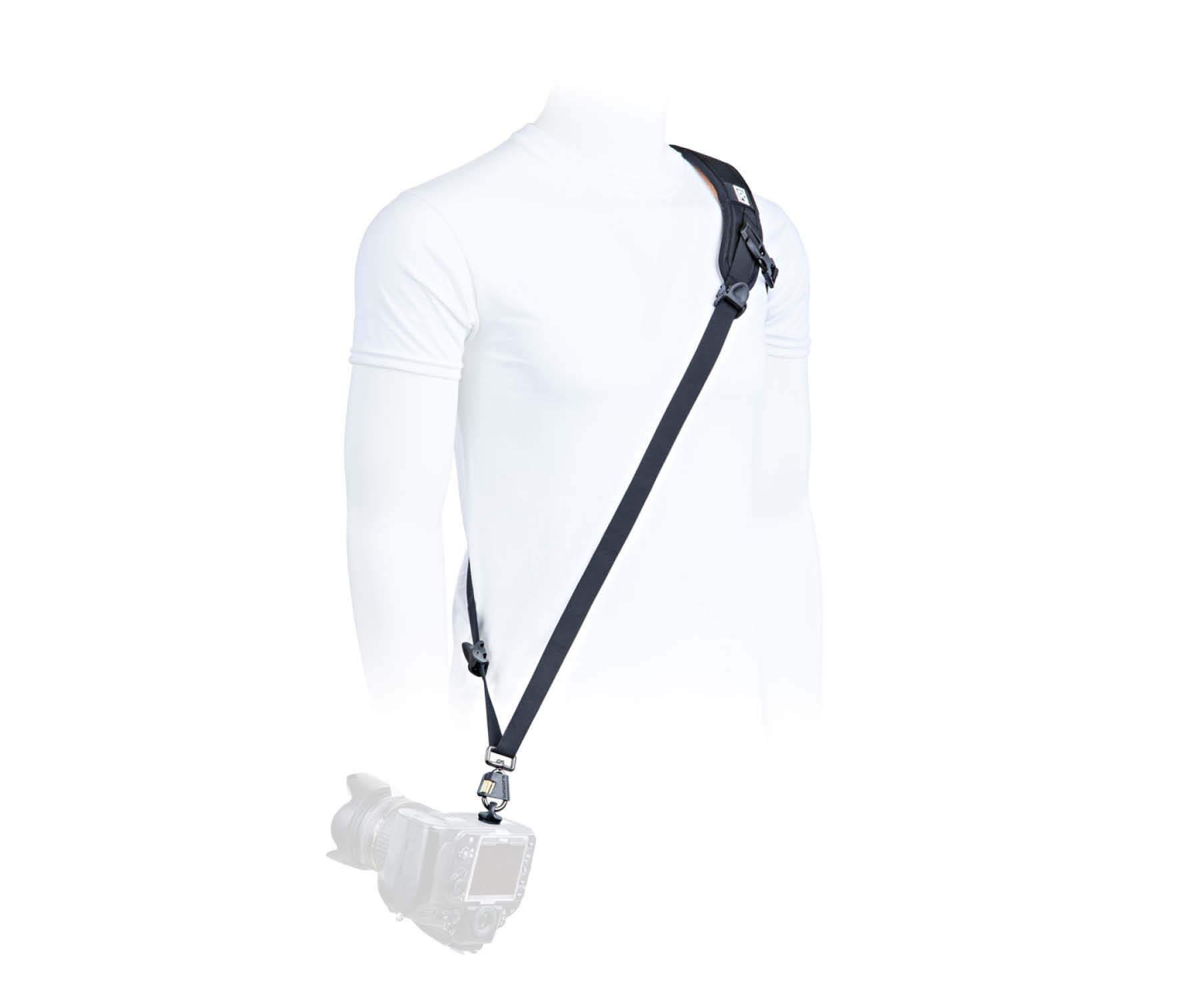 The Sport camera sling is comfortable and fast. The original cross-body sling, this distributes the weight more comfortably on your shoulder rather than your neck, while putting your camera at-the-ready by your right hip.