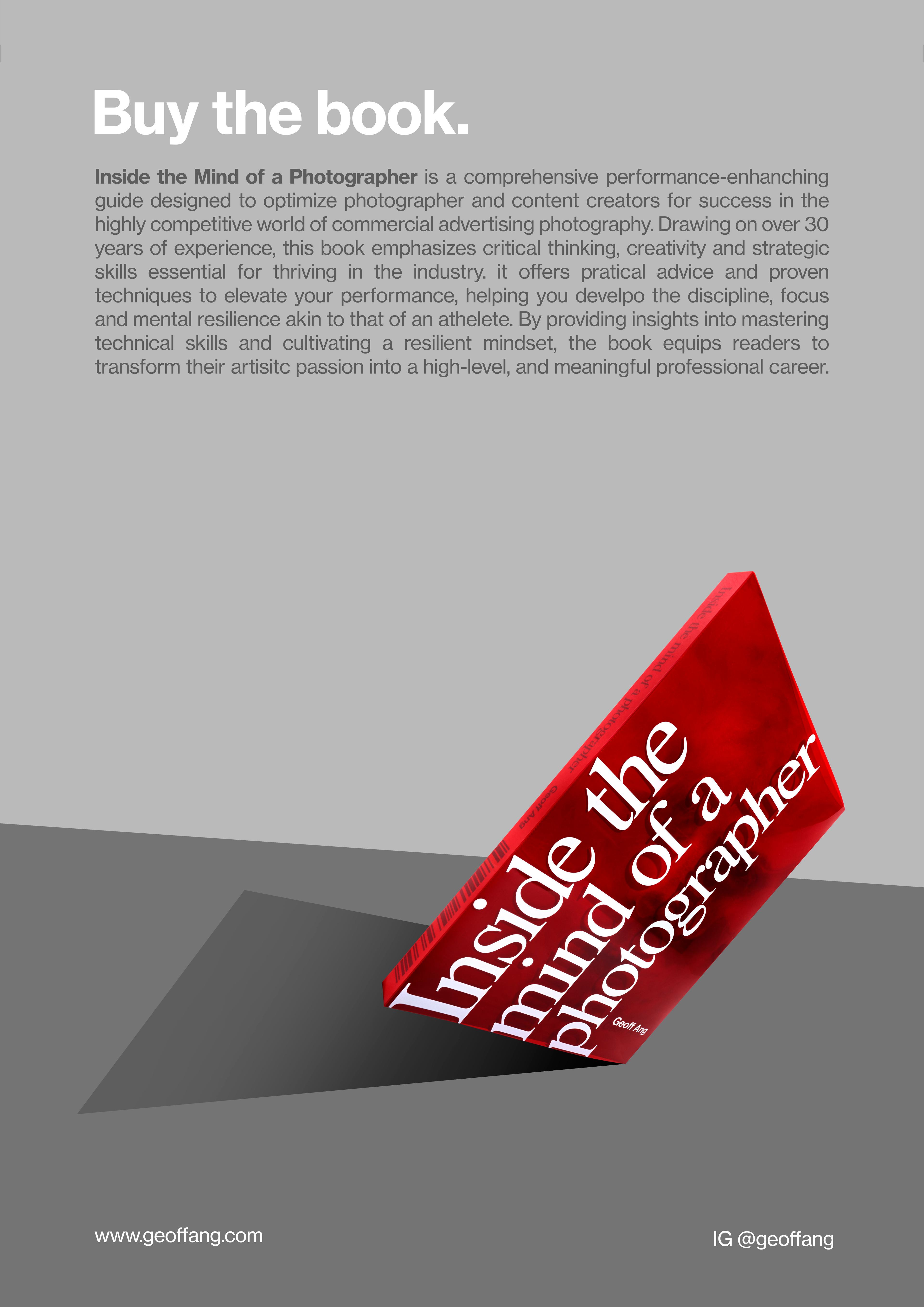 "Inside the Mind of a Photographer" is a comprehensive performance-enhancing guide designed to optimize photographers and content creators for success in the highly competitive world of commercial advertising photography.