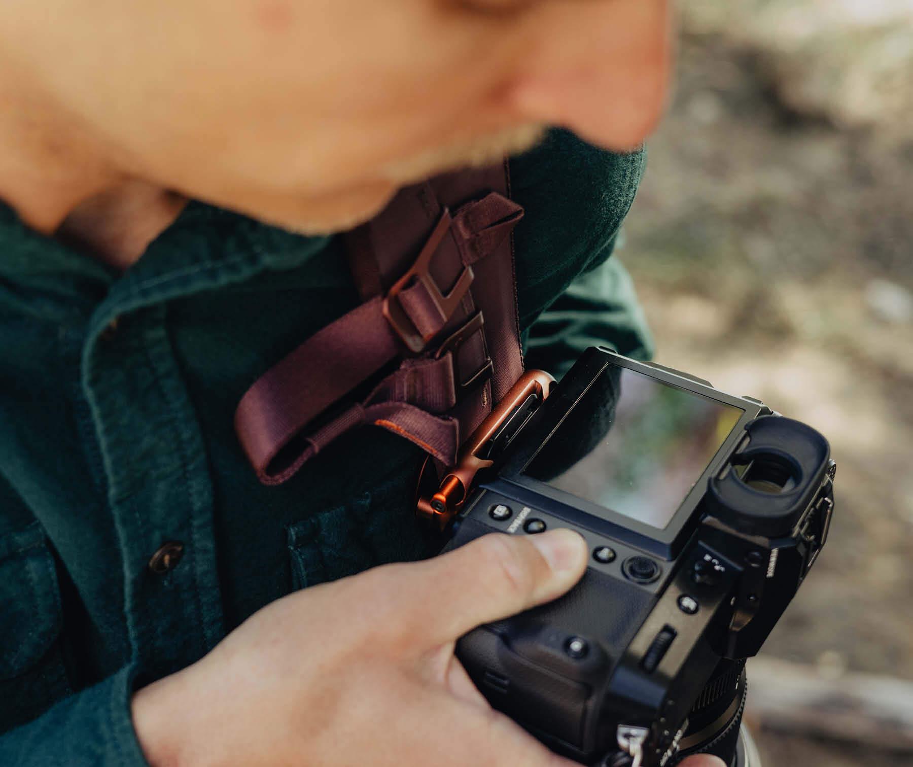 With Capture, your camera is always within reach, allowing for instant access with just a press of the quick-release button. This design ensures that you're never fumbling around when an opportunity arises. For added peace of mind, a redundant security lock prevents accidental release, so you can confidently carry your camera in any situation, knowing it's safe and secure yet ready to shoot at a moment's notice.