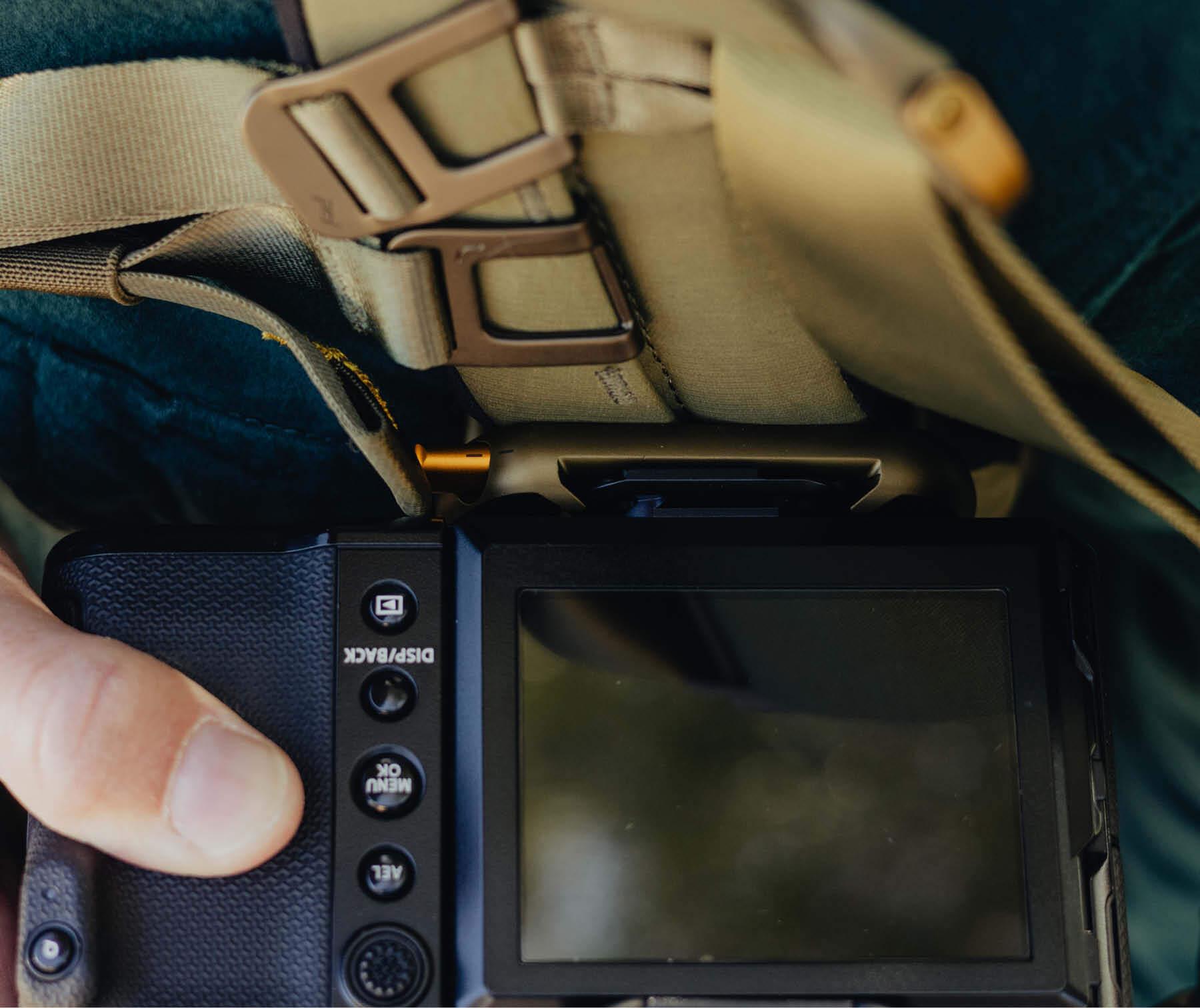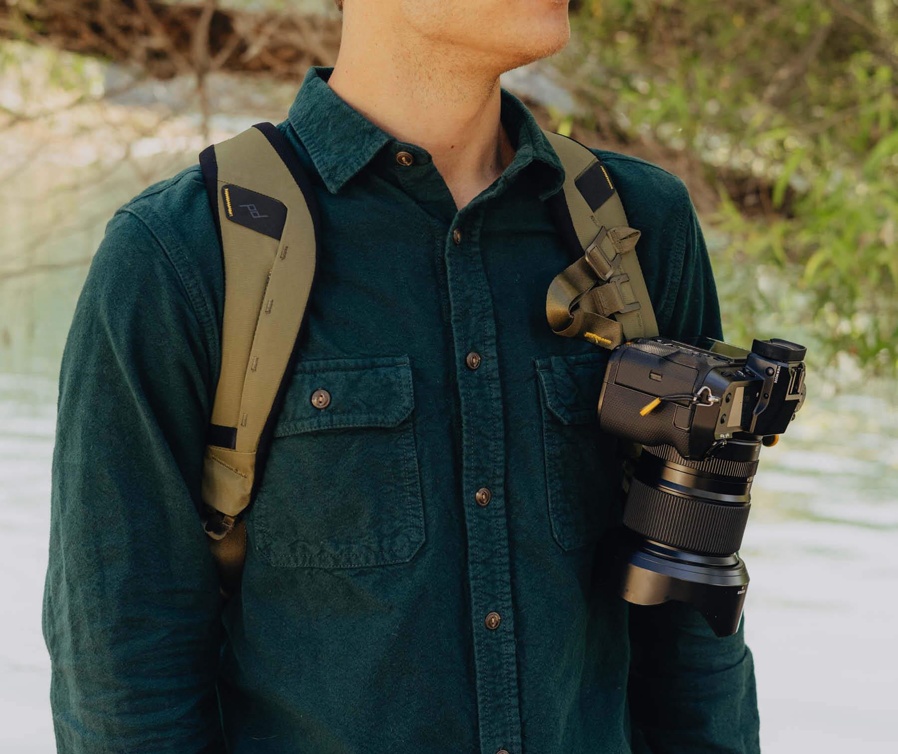 With Capture, your camera is always within reach, allowing for instant access with just a press of the quick-release button. This design ensures that you're never fumbling around when an opportunity arises. For added peace of mind, a redundant security lock prevents accidental release, so you can confidently carry your camera in any situation, knowing it's safe and secure yet ready to shoot at a moment's notice.