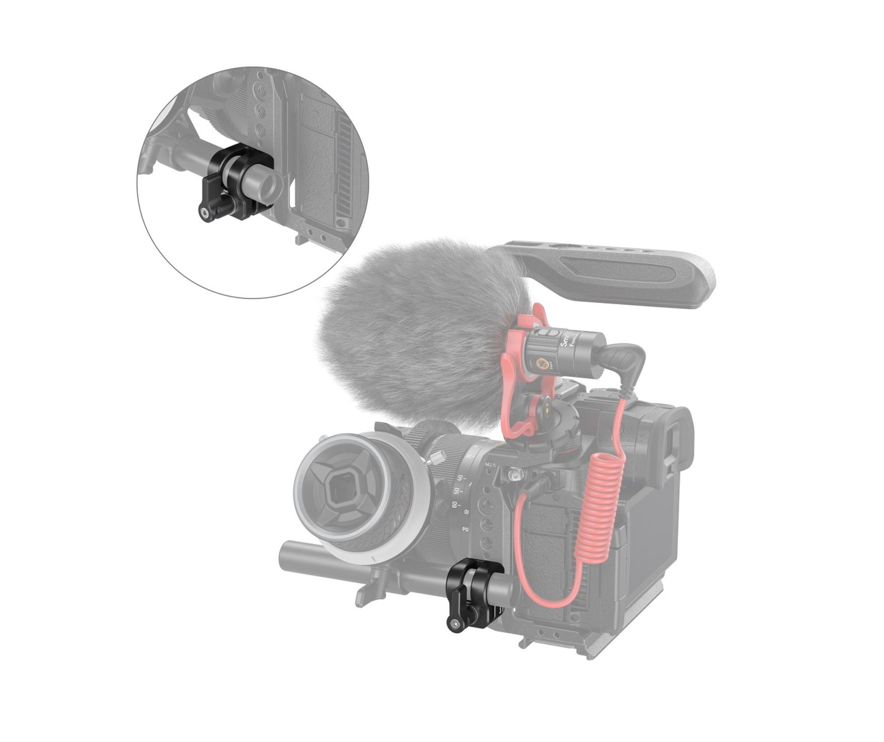 SmallRig 12mm/15mm Single Rod Clamp 3598 works with SmallRig cage to provide a follow focus solution and make for a complete shooting system. It supports cage 3440, 3277, 3278 and 3212 and locks via a 1/4"-20 knob screw and a locating pin. Compatible with 15mm rod, the clamp also fits follow focus system using 12mm rod through an attached 12mm rod clamp adapter. The knob screw makes it easy to remove and install.