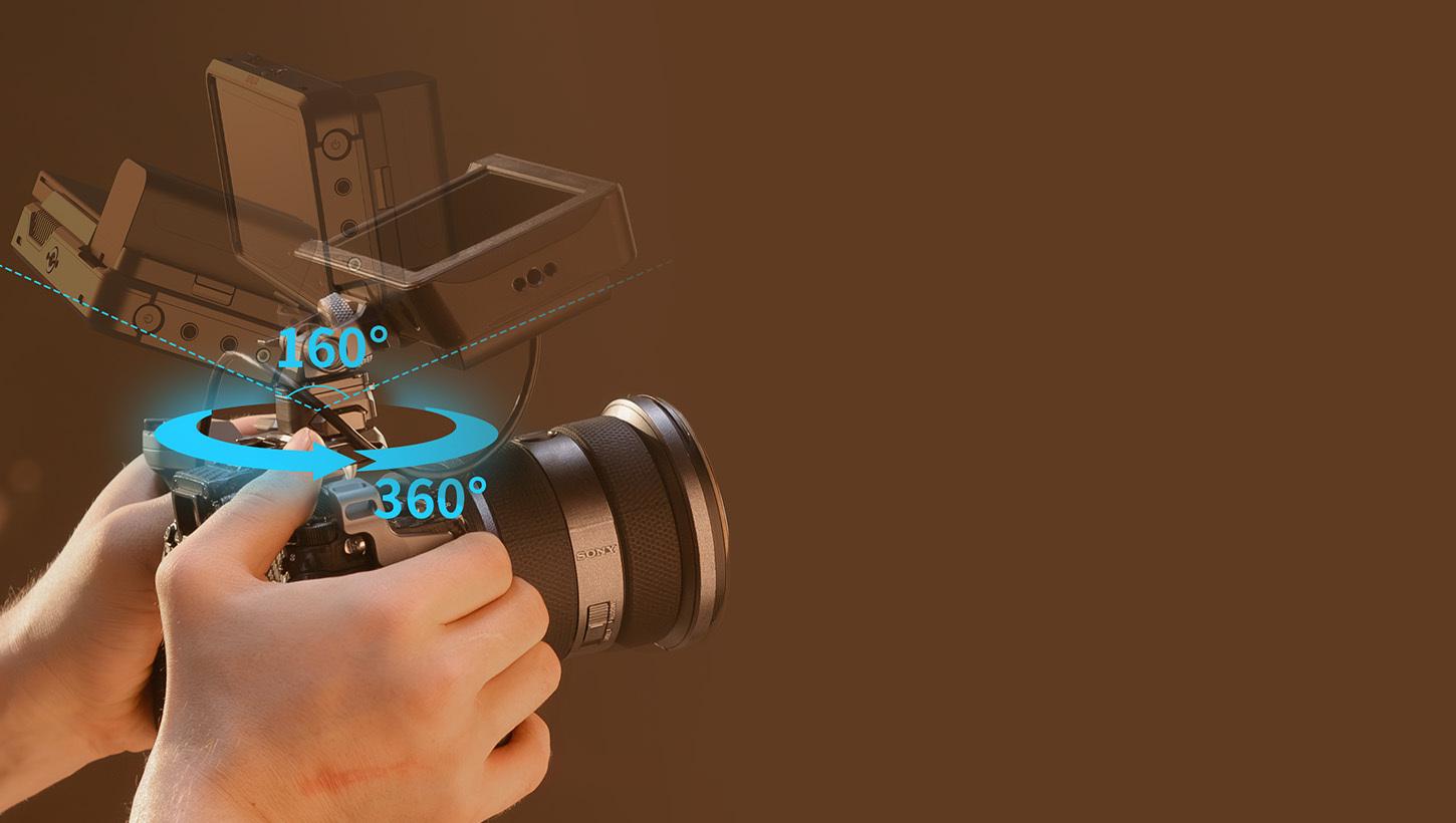 Adjustable 160° tilt and full 360° pan for versatile multi-angle shooting positions