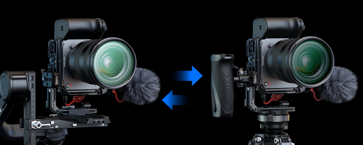 Seamless transition between handheld and stabilizer mode — no cage or baseplate needed