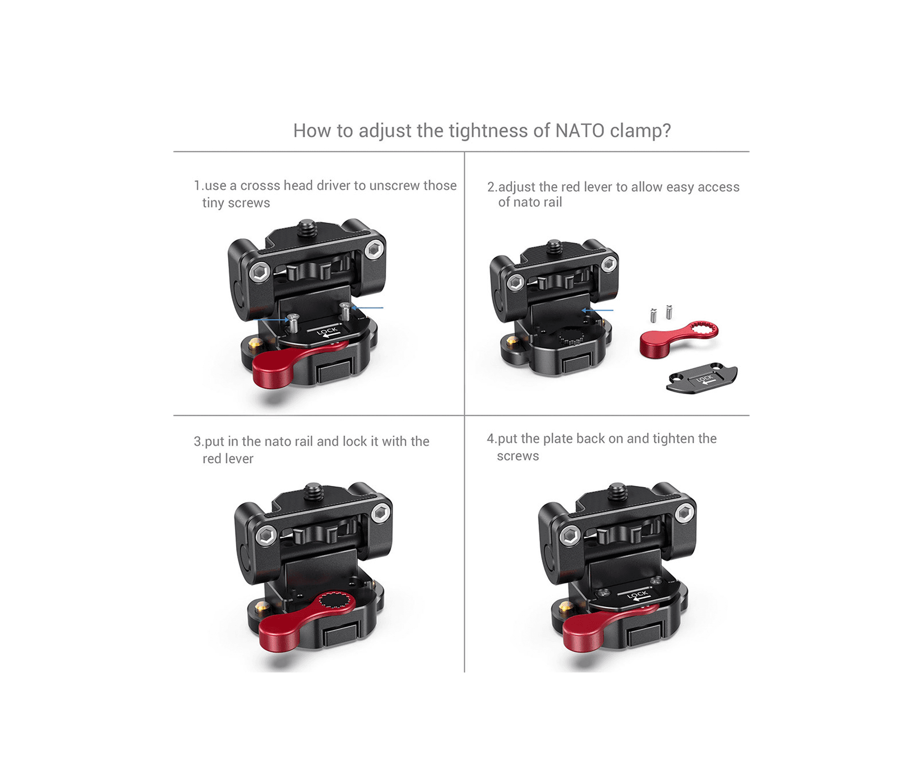 - Quick release on any SmallRig NATO rail or cage with NATO rail. Monitor can be secured with thumb screw or he* spanner.