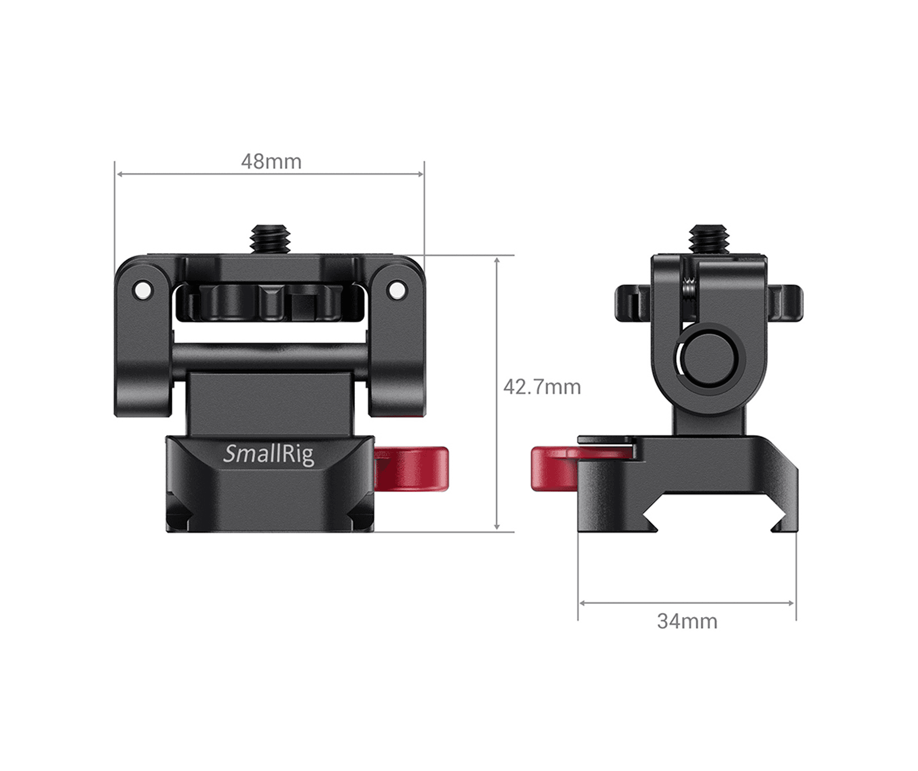 SmallRig Tilt Monitor Mount with NATO Clamp 2100 is designed to hold your monitor onto a camera cage, handle, or other mounting systems via NATO Clamp. The aluminum holder enables to tilt 160° without using tools and free-stop in any position. It can support 5 or 7 monitor up to 1.5kg. Featuring rubber pad on top to prevent your monitor from scratching. The thumbscrew features slots for hex spanner to lock it tight and ensure your monitor safe. You can adjust the tightness of the monitor mount by adjusting the M4 screw on each side based on your needs.